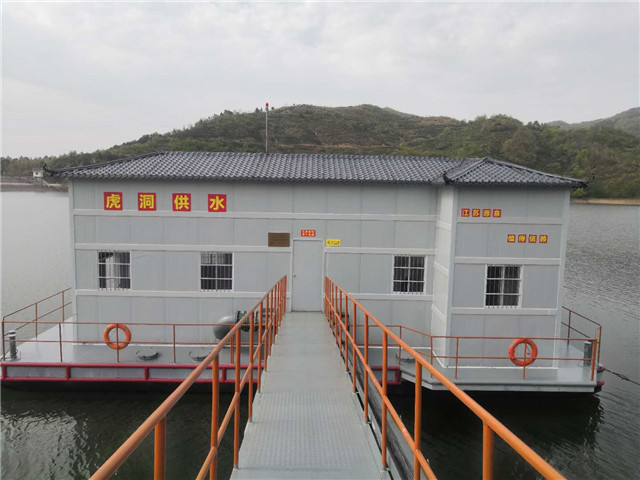 茌平縣東邢水廠項(xiàng)目取水浮船泵站正在安裝中。